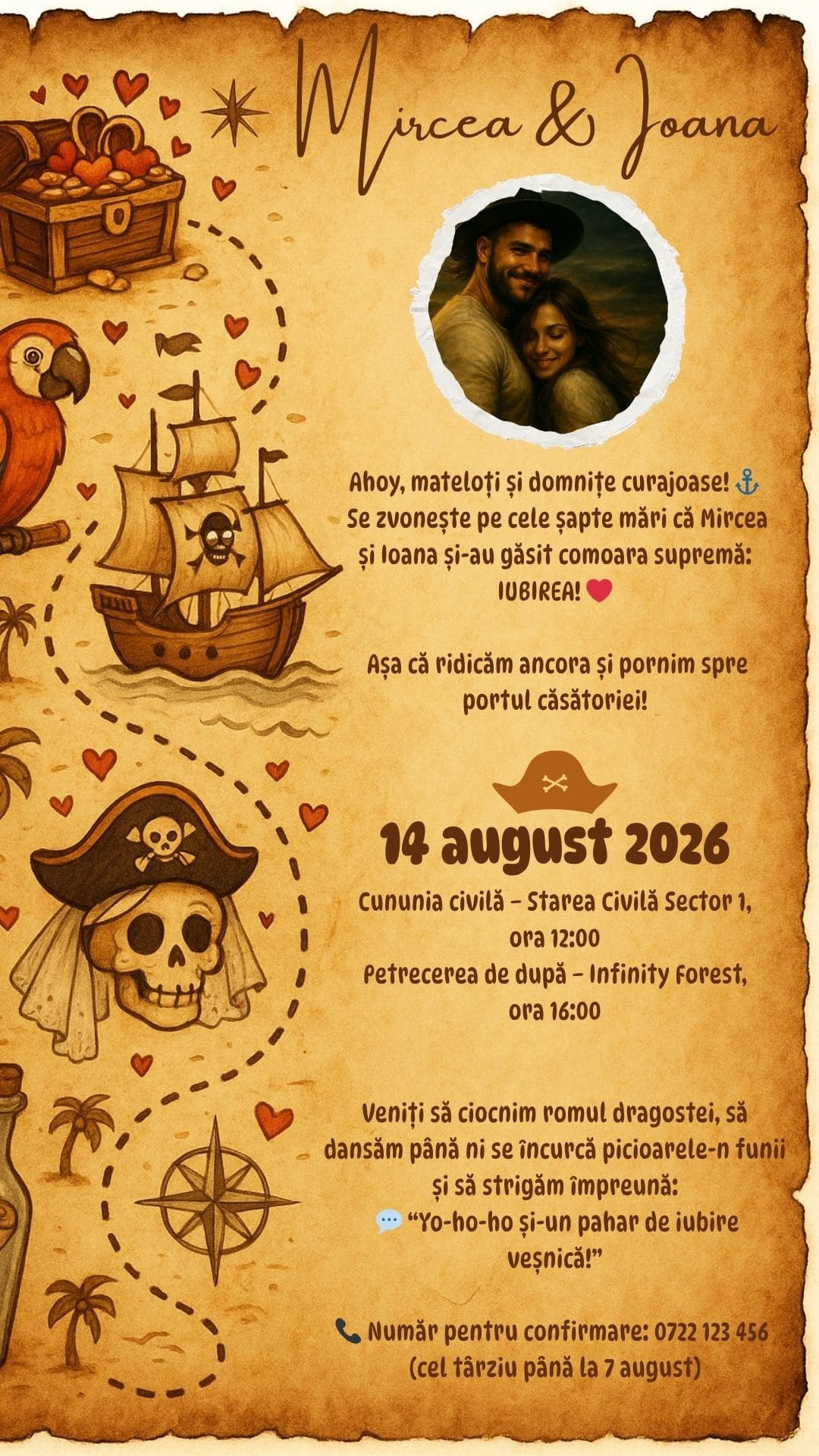 💌 Personalizare completăde la nume, locație, dată și oră, până la fotografii 📸 și mesaje text, fiecare detaliu este adaptat exact după cerințele tale. Tu decizi tonul invitației: elegant, romantic, amuzant sau modern.